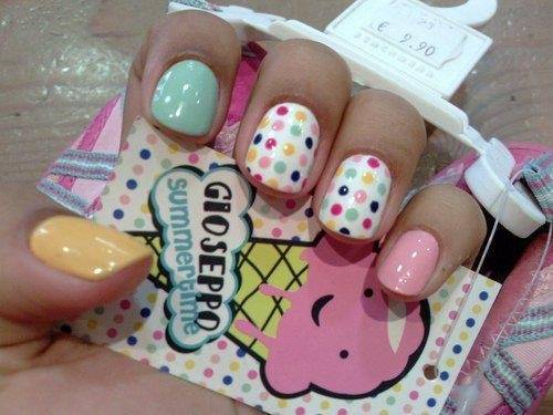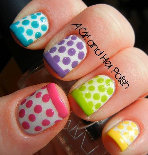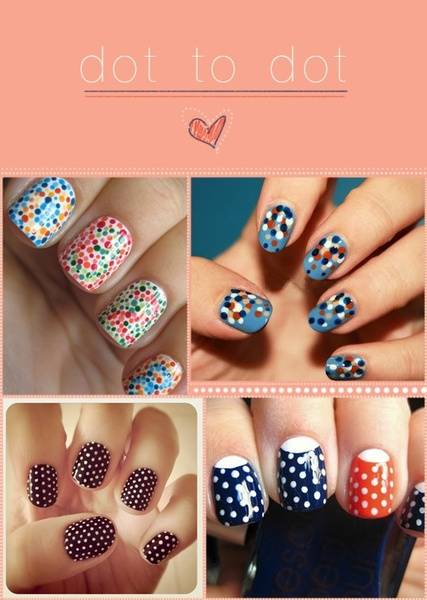 Веќе подолго време точките како декорација се силен бран во светот на модата. И кога некаде нешто ќе почне, со брзината на светлината се рефлектира врз се она што подразбира стил, мода и убавина. Точките се навистина една забавна декорација и веднаш го менуваат изгледот на ноктите. Во зависност од вашиот вкус тоа може да биде скромно акцентирање само на еден нокт и во иста боја, или пак да се впуштите во летниот тренд каде владеат неон и колор блок струите. Еве неколку добри маникир предлози: