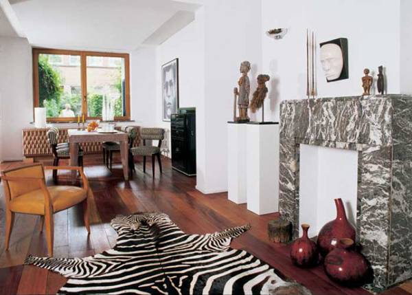 Животинските принтови секако дека се дел од Африка и претставуваат шеми и мостри без кои скоро и не постои африкански стил на уредување. Разните африкански ткаенини за најразлична намена, во разни бои и дезени се исто така силен декоративен носител на овој стил, тука се и дрвените сандаци и ковчези изрезбани со племенски орнаменти, сламените додатоци, шарените пердуви на некоја птица и сл.