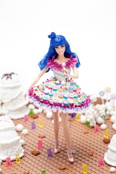 Фустанот на Барби е инспириран од фустанот со колачиња кој Кети Пери го носеше во својот спот за песната „California Gurls“ и е направен од 70 рачно обоени мини колачиња.