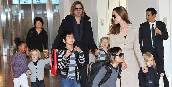 Големото семејство е заедно; Бред и Анџелина долетале во Јапонија заедно со сите шест деца, да не кажеме со целиот фудбалски тим.