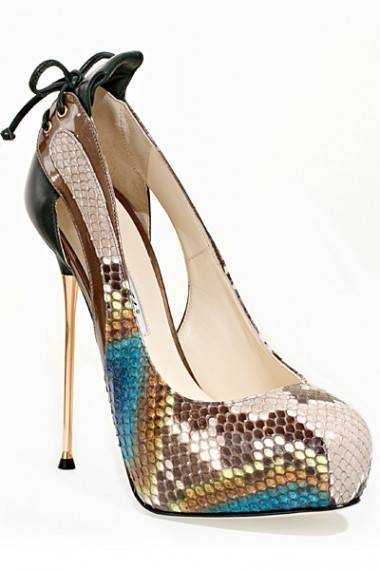 Brian Atwood е познат по еднаквата застапеност на лакираната и брусената кожа во изработката на своите креации, а ова сезона интересни се моделите како во лак така и во скапоцената кожа од питон. Можеби најмногу внимание, Atwood им посветува на деталите, па така моделите се украсуваат со пердуви, а нитните и понатаму се украс број еден на чевлите, а друштво им прават ремчињата, врвките и машните.