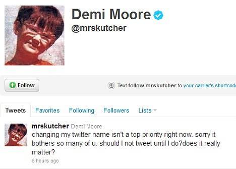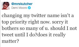 На Твитер, актерката сеуште е во брак и се презива Качер.
