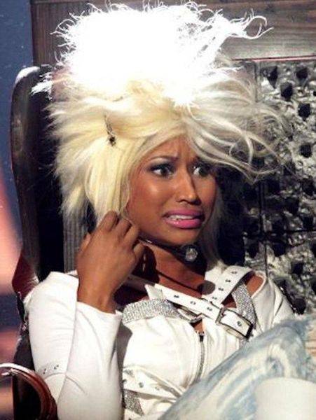 Ексцентричната раперка Ники Минаж секогаш привлекува внимание со невообичаениот изглед, а кога станува збор за луди фризури и перики, за неа дури и Лејди Гага е мало дете.