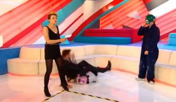 Овој пат, несреќниот пад се случи во студиото на шоуто „Т4“. Хју влетал во студиото и почнал да се зафркава со водителите, а кога малку потрчал неумесно се слизнал и завршил на задникот.