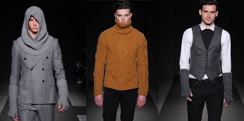 За оваа сезона модната куќа „Simon Spurr“ предлага мошне интересни комбинации, едновремено ретро и современи, тие ни се допаднаа поради смелата комбинација на традиционалниот офис костим со дрски и обемни зимски аксесоари. Како што ќе видите, основното при аксесоарите е акцент на вратот, а друго што многу ни се допадна се плетените ракави врз костимите – тоа е стил кој не е за било кој, но кој е особено оригинален.