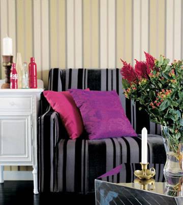 нијанси одат многу добро сo нов, модерен мебел. Потоа, ако ѕидовите се сo широки ленти, тогаш за перниците,килимот, големите вазни, завесите, теписите,комодите,итн..изберете посуптилни ленти. Во зависност од нивната големина, поставувањето и изборот на бои, ентериерот ќе делува класично, уникатно, светкаво, моќно …
