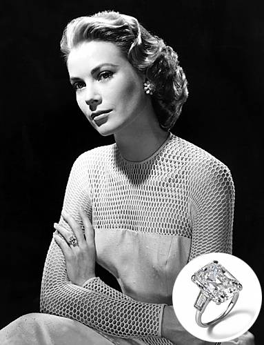Принцот Рение III од Монако и даде Кели два веренички прстени. Првиот од вечниот бренд Картие со дијаманти и рубини. Меѓутоа, кога ги посети САД, тој сфати колку е дијаманти има во оваа земја, па порача 12 каратен дијамант за да се знае дека Грејс е принцеза. Денес овој прстен чини околу 2 милиони долари.