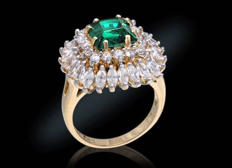 Прстенот на Џеки Кенеди беше изработен од 2,88 каратен дијамант поставен веднаш до 2,84 каратен смарагд. Исто така на прстенот има уште дијаманти од 1,46 карати.