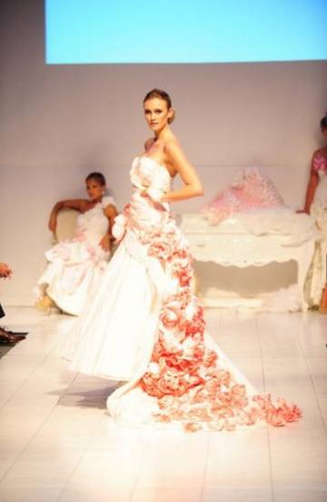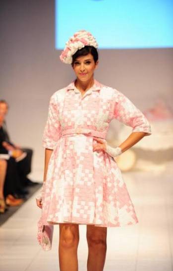 Направени се од бела и розова хартија, фустаните биле прикажани на модна ревија во Торонто која имала за цел соберените средства да ги дадат за помош на жените со рак на дојката.