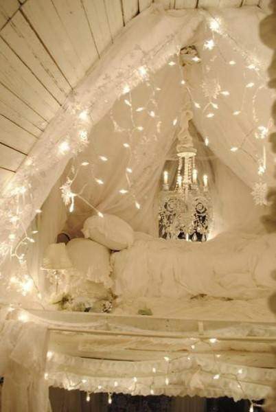 Новогодишни светилки во спалната соба
