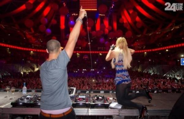 Еден од најуспешните диџеи во светот „паднал во сенка“ кога плавушата се качила на сцена, клекнала на колена и почнала да се слика со мобилниот, за веднаш потоа да ги објави фотките на Твитер.