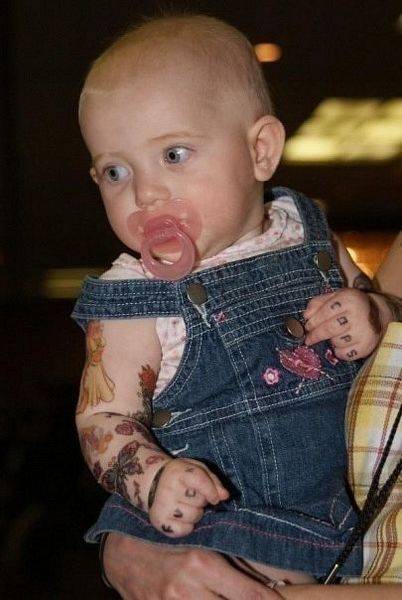 Она што ние го правиме е секогаш нормално, па доколку некој не се однесува според нашите принципи тогаш неговото однесување не е нормално. Не знам дали сум во право или пак некој ќе гледа на мене како човек со предрасуди, но мислам дека е премногу да се исцрта нежната мека бебешка кожа, на децата да има се прават чудни фризури или пак на мало дете да му се даде лименка пиво. Но, сепак постојат различни видови на родители, не се сите исти. Погледнете ги овие фотографии па самите заклучете дали е ова во ред: