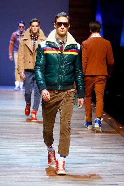 Многу бои и разновидни дезени, на моменти искомбинирани така што очите се замараат – тоа се моделите кратко кажано. И многу ретро. Сето тоа е усогласено со спортски чевли и ја прави целата линија младежка, доста смела и многу забавна.