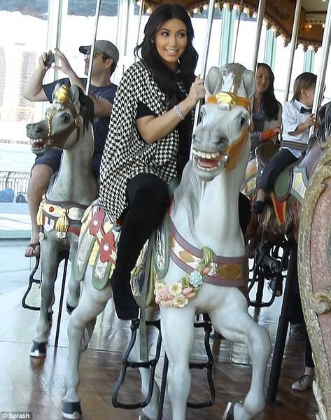 Овој пат беа на прошетка со малиот Месон. Луна паркот беше местото каде сите се одморија. И Ким и Кортни се качија на малите коњчиња на рингишпилот. Гледката не е воодушевувачка, но погледнете како изгледаа тие на рингишпил.
