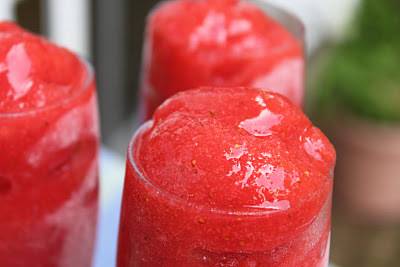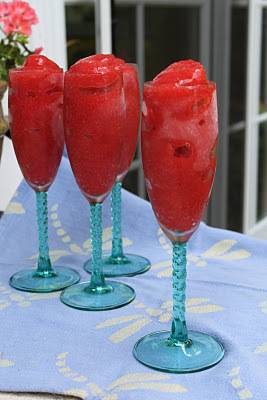 Малку од виното ставете во блендерот каде ќе ги ставите измиените и исчистени јагоди. Остатокот од шампањот ставете го убаво нека се излади.