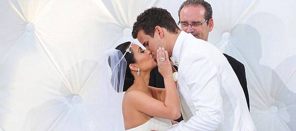 Големиот момент: Ким и Крис се застанаа пред олтарот и ги разменија своите насмевки. Ким блесна со својата убавина, но и накин вреден 10 милиони долари.
