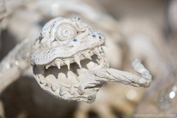 На покривот има четири видови на животни кои ги отсликуваат земјата, водата, огнот и ветрот.