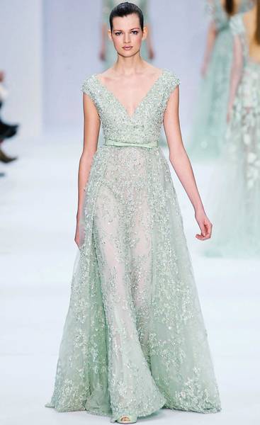 4. Дали сонувате за венчаница во бои? Се враќа, повторно, трендот во боја. Оваа колекција на Ели Сааб е магична со боја на морско стакло. Таа носи свежина и посебност на невестата која посакува да биде отмена и уникатна.