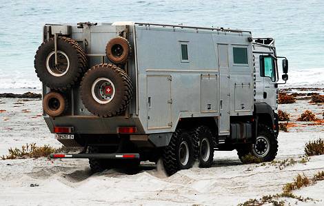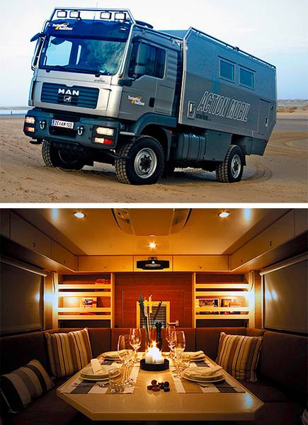 Ако сте љубители на кампување и во исто време сте богати за вас го препорачуваме новиот Globecruiser  на „Action Mobil“ (EUR 490.000; околу 670.000 $) експедициски камион со шест тркала. Со два резервоари може да се сместат 830 литри (да се наполни ќе ве чини $800) и вклучува 4 x 240W соларен систем кој ги поддржува акомулаторот и LPG резервоарите. Во други карактеристики се вклучува седишта на суспензија на загреан воздух и сателитски системи. Базиран е на MAN TGA 6 x 6 платформа, придвижeн од 783ci турбодизел мотор, кој испорачува многу здрави 388 kW. Сега само едно прашање, каде сакате да одите?