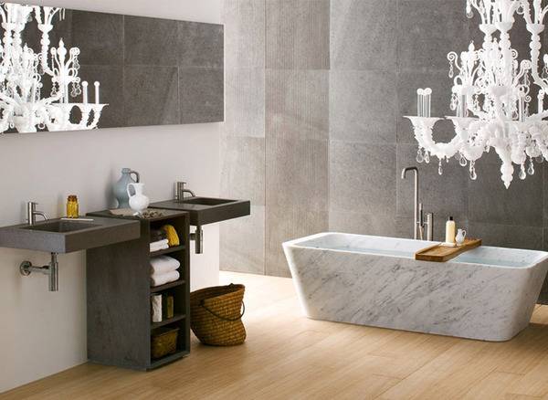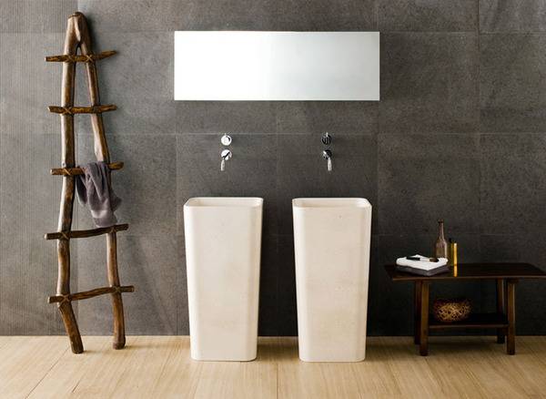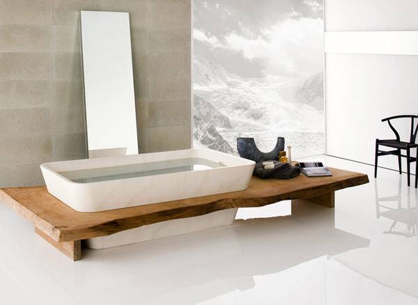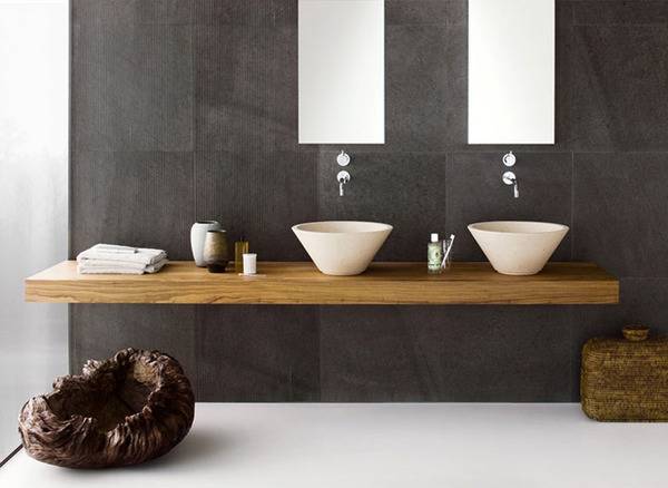 Од мијалникот, преку кадата и туш подовите, до полиците…Сите елементи се и модерни и функционални. Изработени од различни видови на камен, дрво и алуминиум, сите користени материјали влијаат на ист начин, на кој што умее и природата и создаваат атмосфера која поттикнува холистичко опуштање.