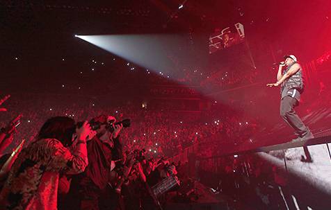 Најголемиот фан на Џеј Зи во први редови ја пратеше неговата изведба во петокот вечерта. Бијонсе гордо го пратеше својот маж на отварањето на Баркли Центарот во Њу Јорк. 31 годишната мајка на 8 месечната Ајви уживаше два часа во спектакуларното шоу. Таа играше и пееше на секоја песна.