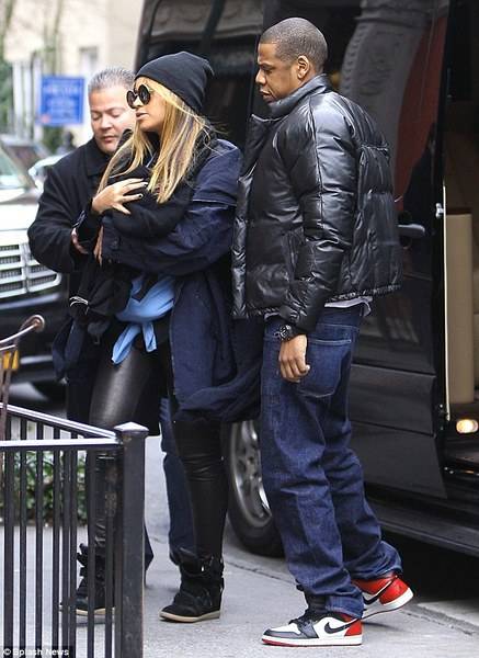 Вчера во Њујорк, Бијонсе и Џеј Зи за прв пат се забележани во јавност заедно со својата ќеркичка Ајви Блу. За жал, детето бил толку завиткано во прегратките на грижливата мајка што немало шанси да се направи слика на која Ајви се гледа. Лицето ѝ било прекриено со црн шал.