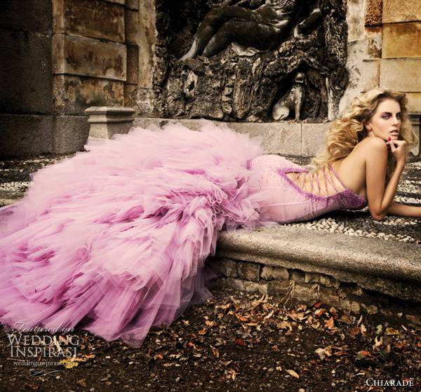 Она што е за изненадување е дека во оваа колекција преовладуваат виолетови невестински фустани, како и венчаници во традиционалната снежно бела боја.