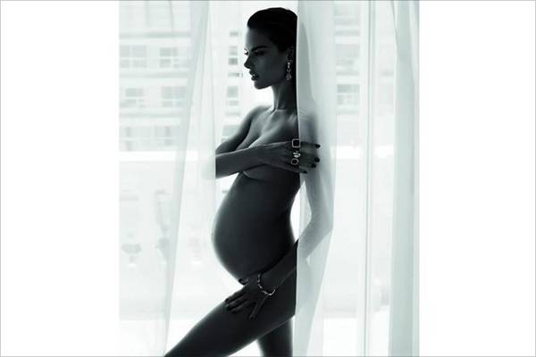 Alessandra Ambrosio која тврди дека бременоста ја прави посамоуверена, својата смелост ја покажала така што позирала гола и тоа во веќе поодмината фаза на бременост.