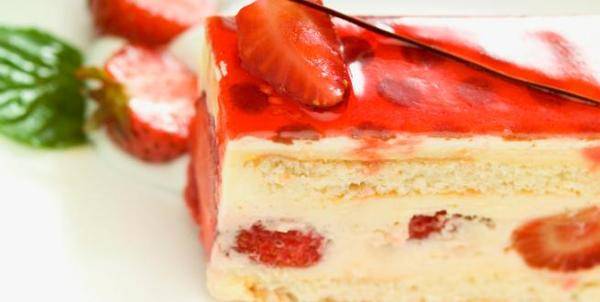 Во еден плех наредете еден ред пишкоти кои претходно ги потопивте во млеко. Одозгора премачкајте со изматената хопла и шеќер. Наредете го овошјето одозгора и ставете еден ред шлаг. Ако плехот е помал направете го тоа уште еднаш, повтрете ја постапката. Кога ќе завршите ставете го колачот во фрижидер да се излади. Се служи ладен.