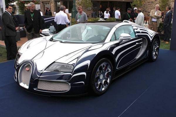 Овој многу посебен Veyron Grand Sport е малку повеќе психоделичен отколку елегантен, со сини виори насликани на белото тело на возилото.Во прилог на бојата, Bugatti Veyron L’or Blanc поседува и дванаесет порцелански елементи создадени од најдобриот порцелан на Берлинскиот производител. Порцеланот се користи кај ознаките во центарот на фелните, капачето за гориво и на капачето за масло, како и на потписот “EB” во задниот дел.