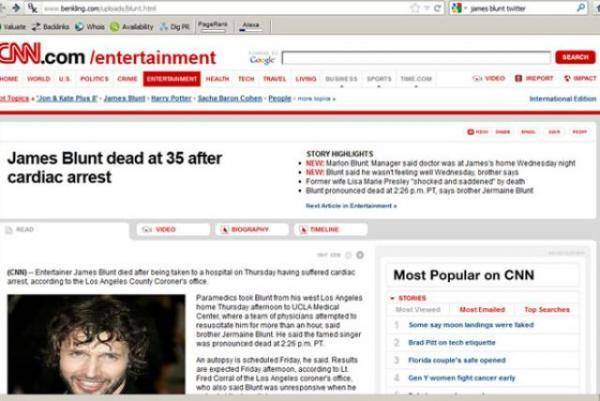 Последен во низата на познати личноси кој го сахранија на интернет е 38 годишниот англиски одличен музичар James Blunt.