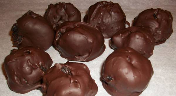 Секое топче се потопува во растопената заедно со маслото црна чоколада. Поставете ги готовите бонбони во хартиени кошнички или во декоративна кутија од други чоколадни бонбони.