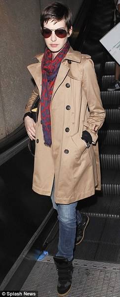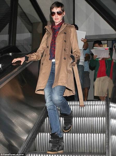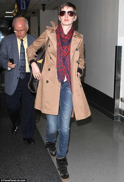 Фармерки, високи патики, мантил и шал со животински принт, беше комбинацијата која таа ја одбра за патување.