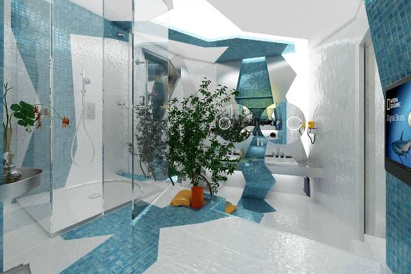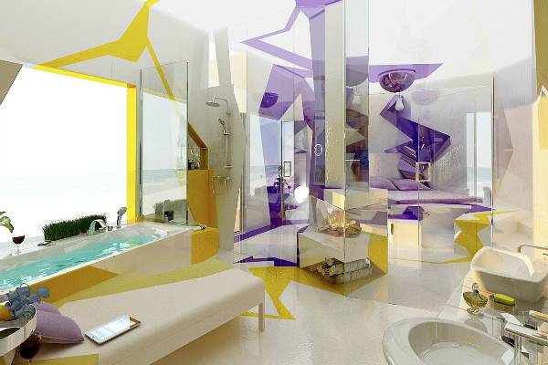 Ладните бои и по малку апстрактни линии го претставуваат просторот кој има необична перспектива, интересен изглед и дизајн. Овој единствен и интересен дизајн дефинитивно го освежува ентериерот и отстапува од вообичаениот и неутрален простор. Секоја просторија во енергичен стил и дизајн, остава силен впечаток и самиот престој во вакво опкружување, овозможува голема доза на енергија.