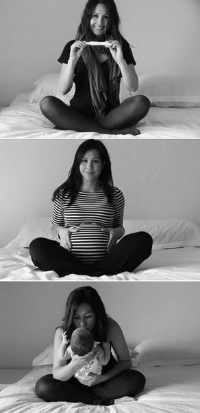 Забележите ги важните моменти од бременоста: две цртички, стомаче и после бременоста. Држете се до истите детали, местото, позите и ќе добиете фантастични фотографии.