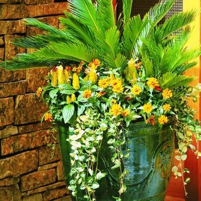 Почнете со изборот на цвеќето, а потоа одберете ги саксиите кои ќе ја следат замислената тема.