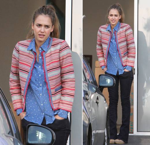 Една од ние е и Џесика Алба, која е голем љубител на фармерки. Иако се чини дека со тоа парче се сложува буквално секој вид на облека, Алба сепак, направила почетничка грешка. Таа ја искомбинирала сината кошула со бели точки со џемперче на пруги, што е непростлива модна грешка.