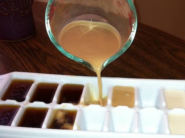Користете ледени коцки од кафе. Потребен ви е само најобичен сад за лед. Ако сте љубители на чисто кафе – замрзнете такво. Може да го исполните садот со млеко, капучино, макиато  и сл.