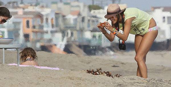 Една од најсексипилните жени во светот, Алесандра Амбросио деновиве ги поминува со своето семејство на плажите на Малибу.