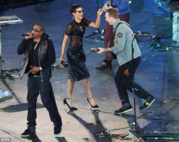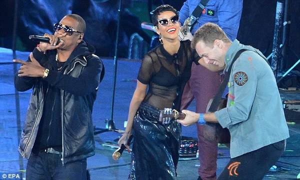 На манифестацијата се појави и Џеј Зи, кој со Ријана ја отепа Run This Town.