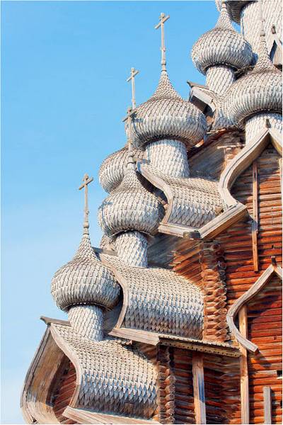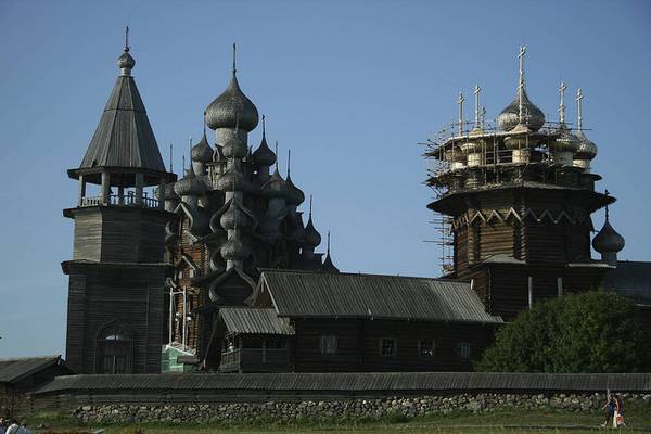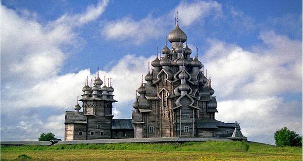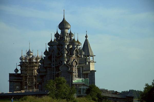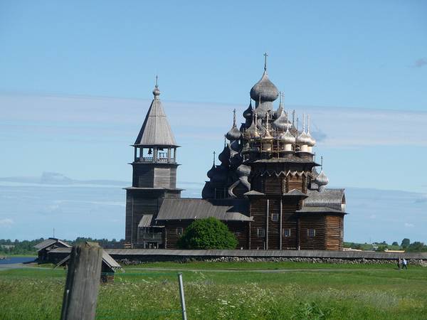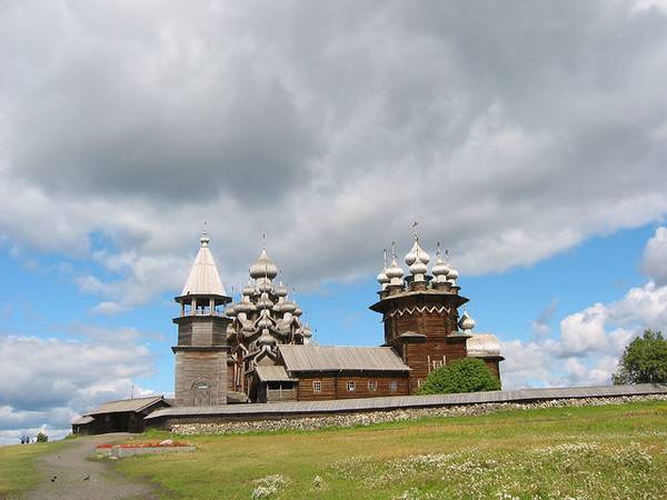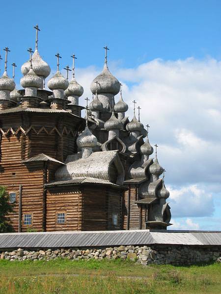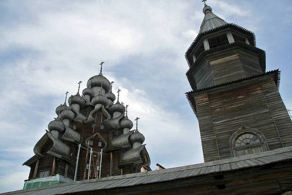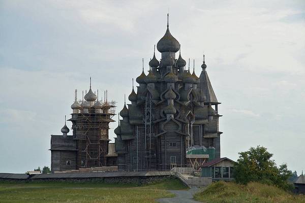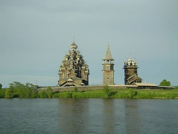Пред околу 300 години, жителите во областа околу езерото Онега, одлучиле дека во нивниот крај сакаат две нови цркви. Старите ги запалиле,а како совршено место за изградба на новите цркви, го избрале малиот остров кој се наоѓа на средината на езерото. Веднаш после одлуката, почнала изградбата на двете грандиозни цркви направено од дрво и од тогаш, за нив е позната анегдотата: „ Многу приказни, многу куполи, а сепак едноставен и смирувачки објект“.