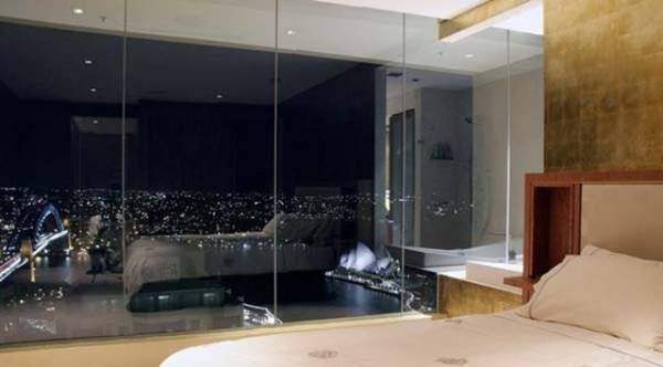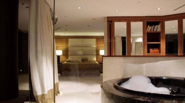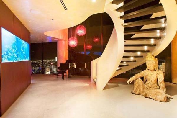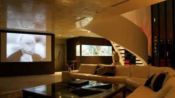 Необичното всушност е во самите детали на импресивната спа соба, подвижниот гардеробер, преубавата тераса на покривот, базенот, домашното кино, огромниот аквариум…