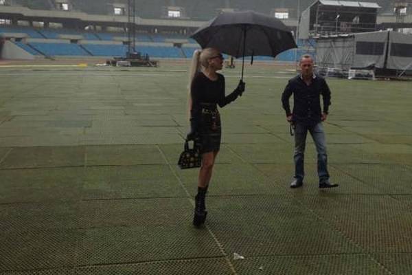 Lady Gaga накисна на празен стадион :)