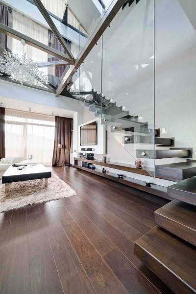Прозорци од подот па до таванот, скали кои висат со стаклена ограда, проѕирни подови, ова се само дел од нештата кои го прават овој стан уникатен.