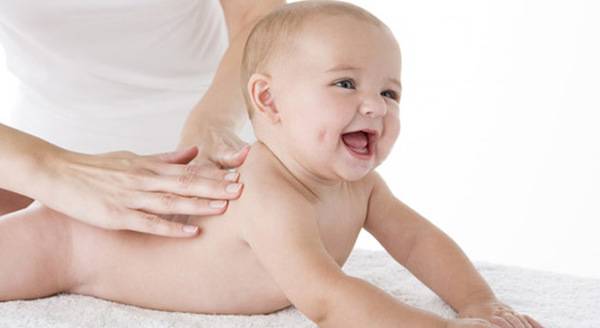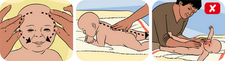 Со прсти погалете го лицето на бебето од средината на челото кон слепочниците и после тоа обравчињата. Ако бебето дозволува можете да го легнете на стомаче и да го масирате целото телце по должината од главата кон петите.