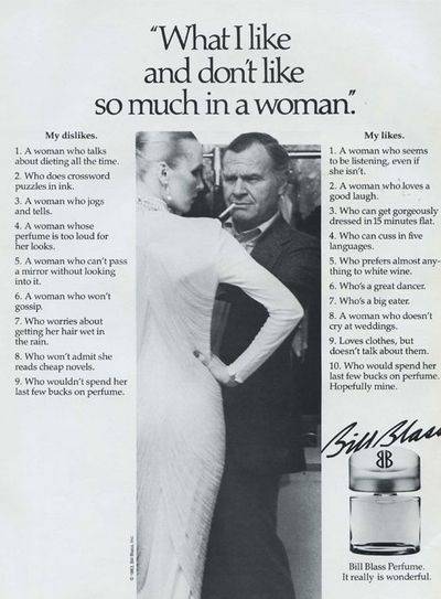 Старата реклама за парфемот им праќа на жените едноставна порака, па иако е стара, некои од овие совети можеби не е лошо да ги послушате. На една страна се наоѓаат позитивните, а на друга страна негативните страни на жените. Сепак, некои од нив се навистина интересни, како на пример тврдењето дека мажите сакаат жени кои пцујат на пет јазици.