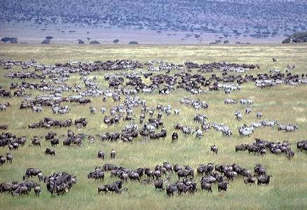 Националниот парк Серенгети има 14.763 квадратни километри тревни рамнини, савани и шумски предели, по должината на реките во Танзанија. Најпознат е по годишната миграција на милиони животни, особено за гну и зебрите.