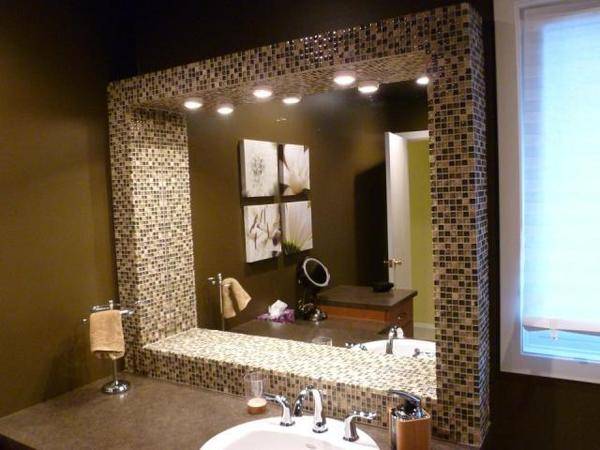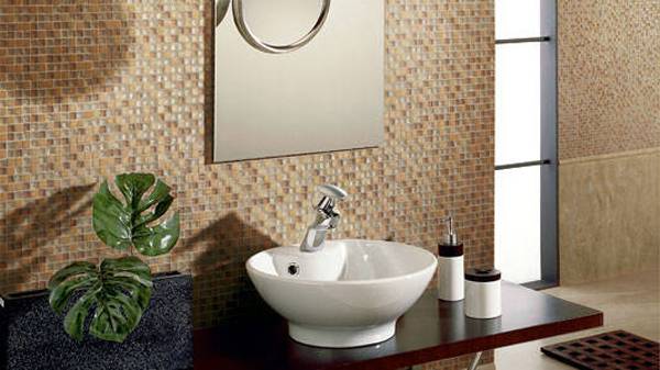 Силниот контраст на бои и текстуалната површина на мозаикот даваат контраст на санитарните елементи. Мозаиците во сина и зелена боја асоцираат на свежина и го подобруваат изгледот на бањата.