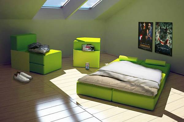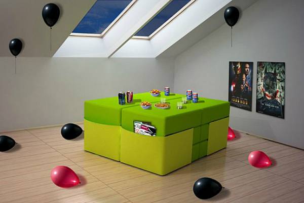 Мебелот со јасни геометриски облиси, совршено се вклопува во модерниот ентериер и може да биде модификуван на повеќе интересни начини.