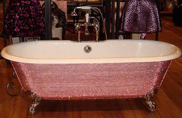 За изработка на дијамантската када за бањање на уметникот Lori Gardner му беа потребни три години и 44.928 розеви Swarovski кристали кои се рачно поставени на еден прекрасен примерок на када направена во стил од 19 век. Импресивно, зарем не?